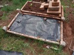 So we are trying out an intermediate strategy – to cover the graves with weed-membrane and mulch and mark each grave with a small plant buried in its own pot for ease of lifting next year. We have started this with four of the children’s graves, each of which now has its own pot of lavender. The following photos show the steps:
