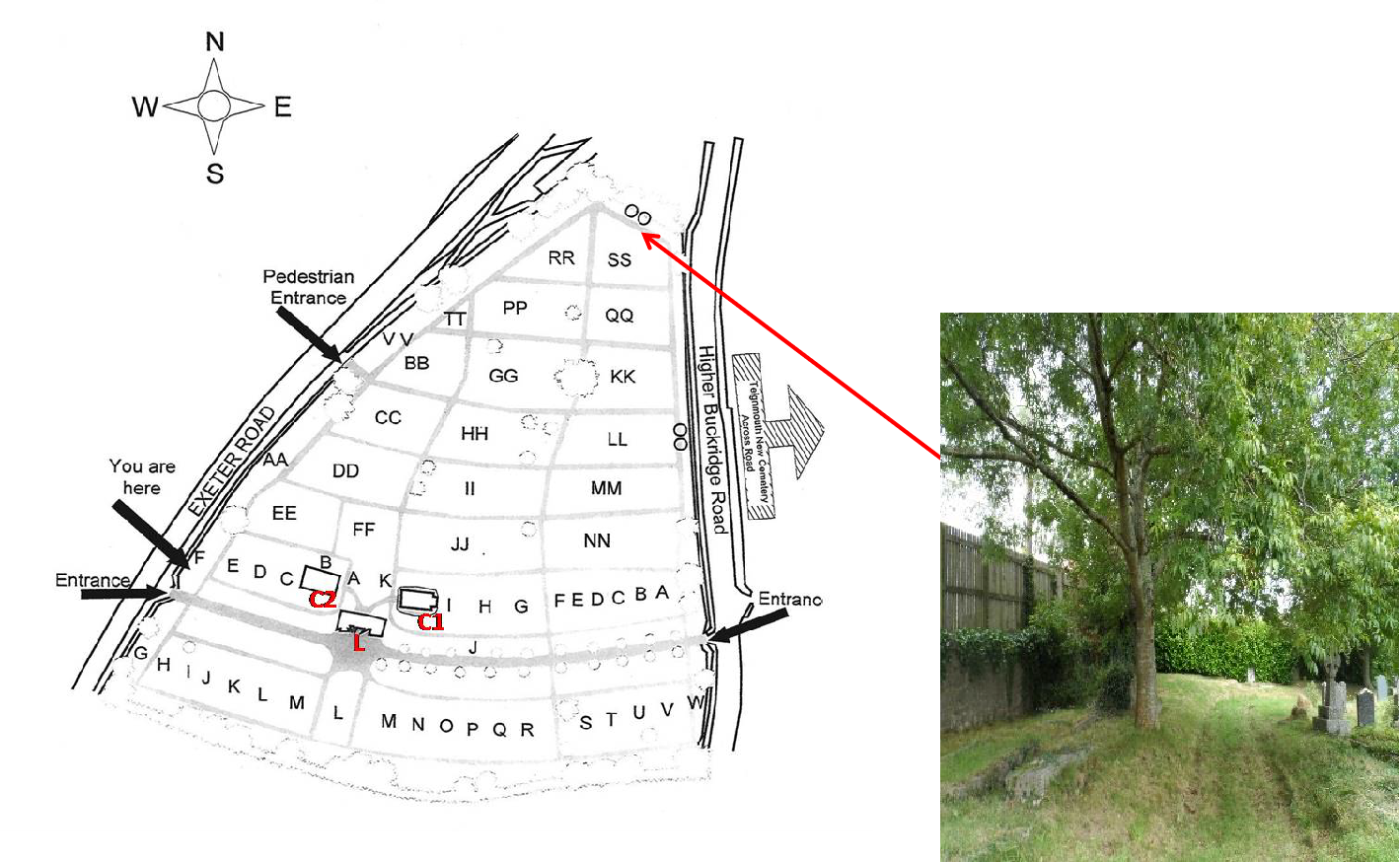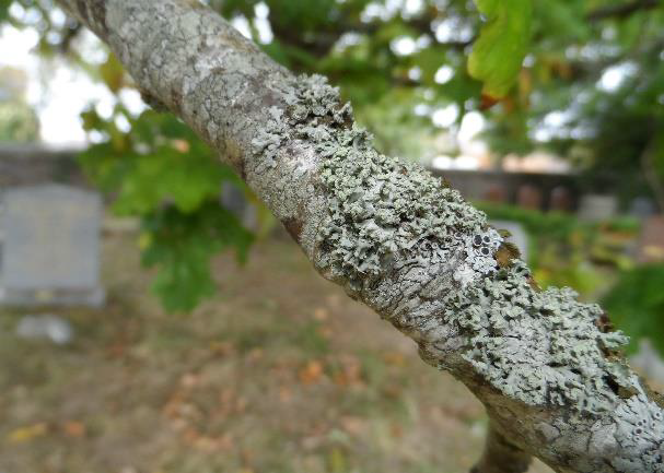 Look for lichens on the Ash and Oak trees along the cemetery boundary with the Richard Newton Hall.