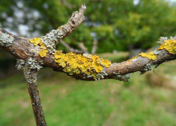 Xanthoria parietina mostly found at the tip of the branches.