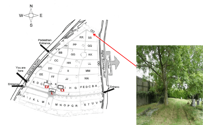 We tend to think that the presence of lichens indicates good air quality. Whilst some lichens are unable to grow in polluted air, there are others that thrive in atmospheres with a high concentration of nitrogen gases, such as Ammonia from farming environments and NOx gases from traffic fumes. Physcia and Xanthoria, found here, are known to be Nitrogen loving and Parmelia and Flavoparmelia can tolerate moderate levels. It would seem likely that the atmosphere, in this section of the Cemetery, is polluted by fumes from traffic passing along the Exeter Road.
