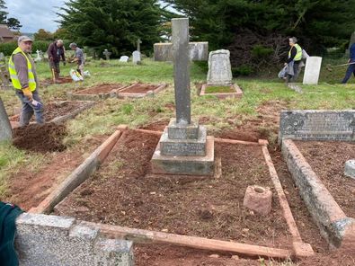 Here are just some of the graves uncovered as recorded on our Facebook site. The caption under each picture indicates the name of the person interred, the date the grave was uncovered, the volunteer involved and occasionally a brief note.