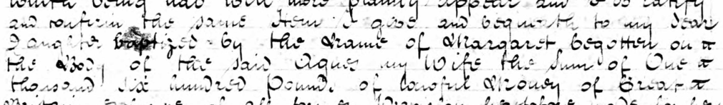 Rawlin died two years after that and Margaret remained their only child. It turns out though that Rawlin had sown some wild oats and had two other illegitimate children. Interestingly he recognised them in his will[5]: a “supposed’ daughter, Elizabeth, by Joan Philips; and a ‘reputed’ son, Humphry, by Grace Barnes”. The will also refers to Margaret as “my dear Daughter baptised by the name of Margaret begotten out of the body of the said Agnes my Wife”.