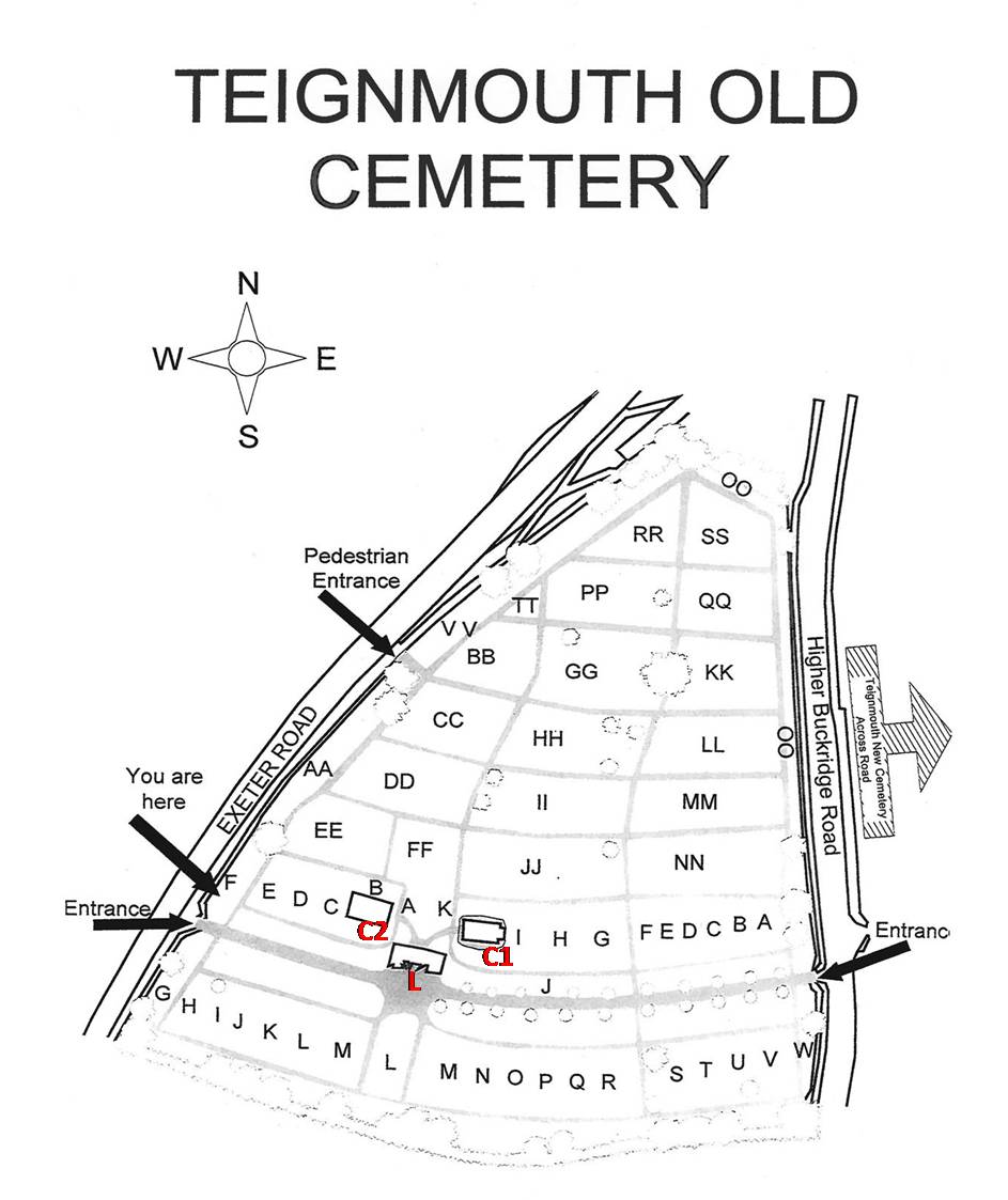 If you have a smart device with GPS location you can use the subsequent tables to view the map location (use satellite view) of the grave on the “Findagrave” site which will give you an approximation within a few metres when you are in the cemetery. It also gives a picture of the grave you are looking for and other details.