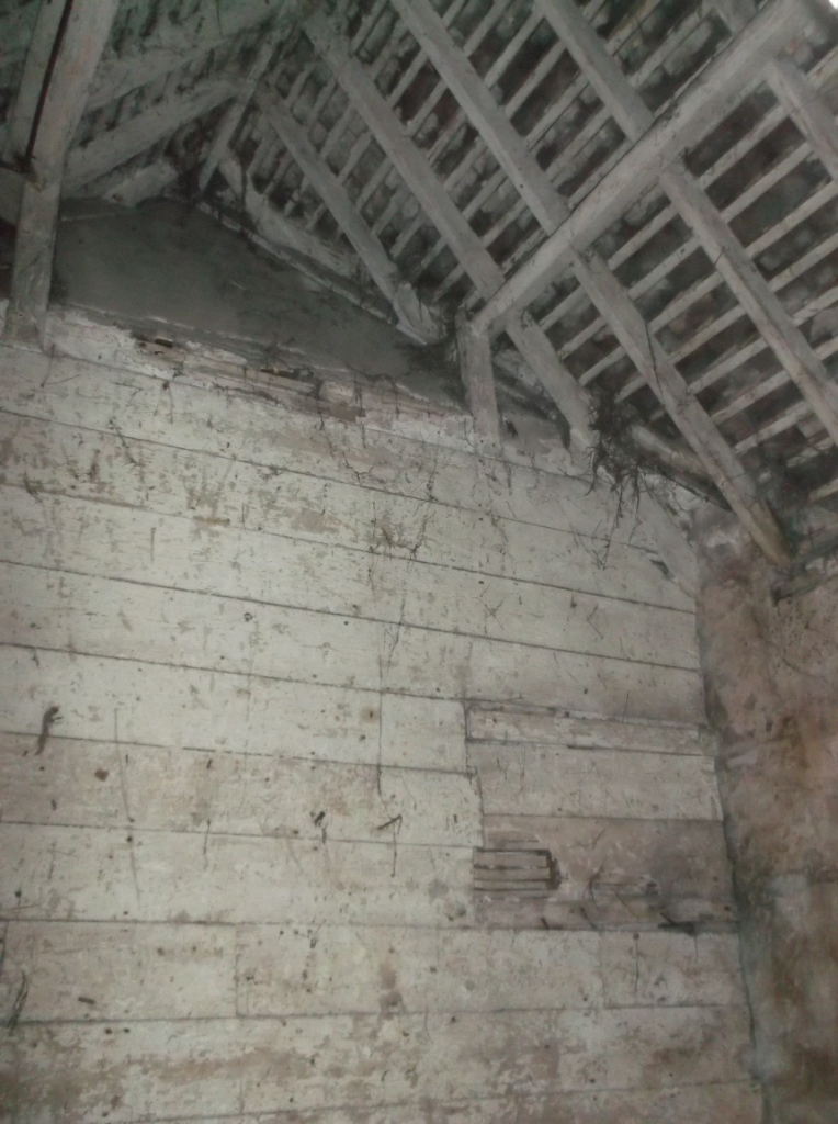 Entry into the left-hand half of the lodge showing staircase up to the garret rooms on the first floor